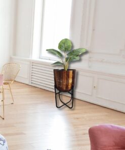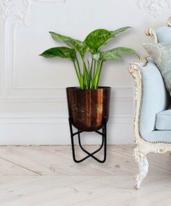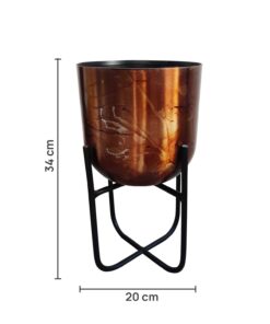 Crafted from high-quality metal and finished with a luxurious copper-black touch, it offers durability, stability, and elegance. The sturdy aluminum stand provides reliable support, ensuring that your plants remain secure while adding a touch of sophistication to your decor.